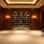 - Bars d’accueil : comptoirs modulaires en marbre ou bois noble, mobilier sur roulettes pour adaptation rapide